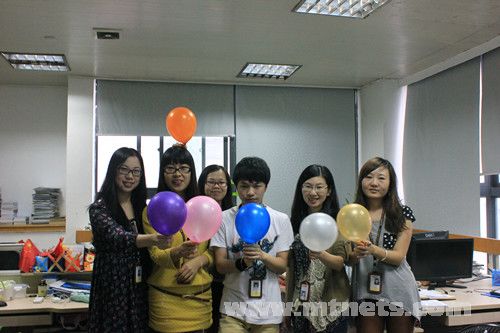 下午,“幸運九九九”的活動火熱開展。公司每位伙伴都可以得到一個五彩繽紛的氣球,而其中一些同事的氣球里面是有幸運獎品的,在主持人的號召下,大家喊出:勢如破竹不可擋,興旺寶來年更火爆,大家一起“爆”。辦公室一瞬間仿佛鞭炮齊鳴般,充滿了歡樂的氣氛。吃著寓意展翅高飛的雞翅,喝著百事可樂,抱得獎品歸。