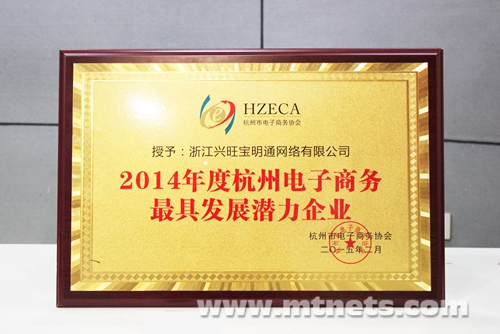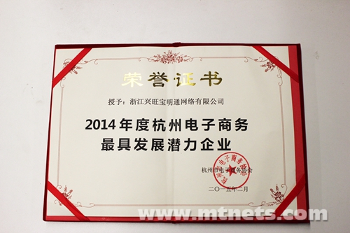 浙江興旺寶明通榮獲“2014年度杭州電子商務最具發(fā)展?jié)摿ζ髽I(yè)”
