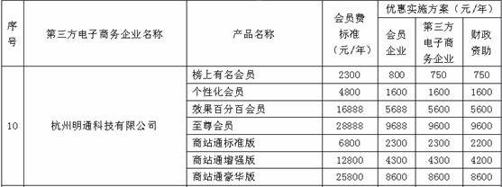 2、關(guān)于公布對杭州市第三方電子商務(wù)企業(yè)實(shí)施優(yōu)惠方案(第一批)的通知,請查看政府官方網(wǎng)站:http://www.hzjingwei.gov.cn/newjingwei/file_list.asp?id=10443
