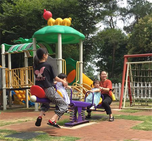 陪媽媽坐蹺蹺板