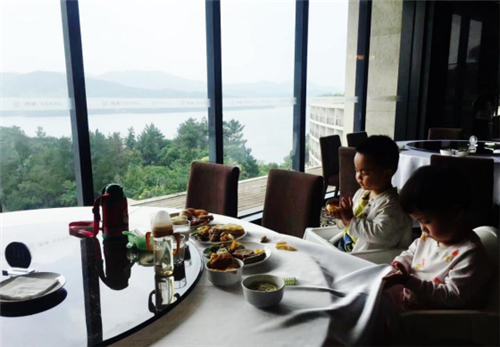 美食+美景,小朋友已經(jīng)乖乖坐在窗邊享用早餐了
